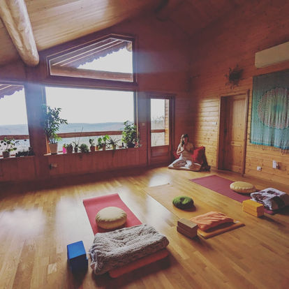 - 3 sessions de yoga (dynamisant le matin (type Hatha/Vinyasa), régénérant le midi (yoga nidra) et calmant le soir (type hatha+restauratif)
